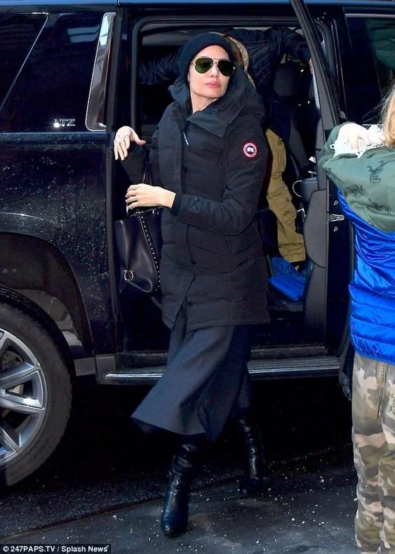 Angelina Jolie in Canada Goose via dailymail.co.uk